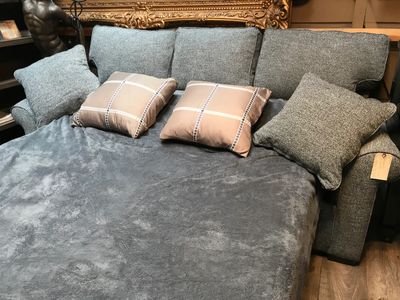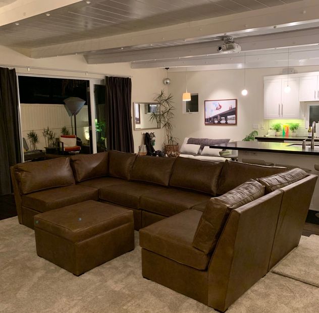 10 YEAR OLD FABRIC SECTIONAL REUPHOLSTERED IN LEATHER